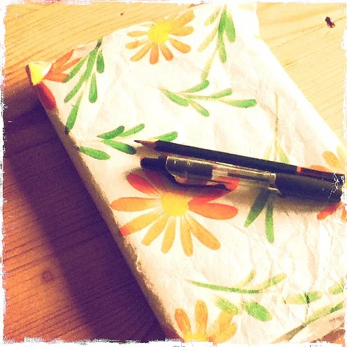 Emily's creative notebook and pen remind me of warm, energetic, sunny, easy summer's days! And it reminds me of birthdays! Wrapping paper, whispers and early mornings. You'll find more of Emily's creative expressions on her blog Mousy Brown's House where she records "things I have made, things I have seen and the things that help me to enjoy my life".